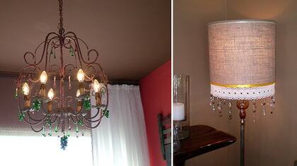 Acá vemos cómo se combinan armoniosamente elementos totalmente diferentes: arpillera, puntillas y caireles. En la primera foto, distintos códigos para un resultado armónico: una lámpara de techo de estilo puede cambiar con distintos accesorios según la onda que le queremos dar.