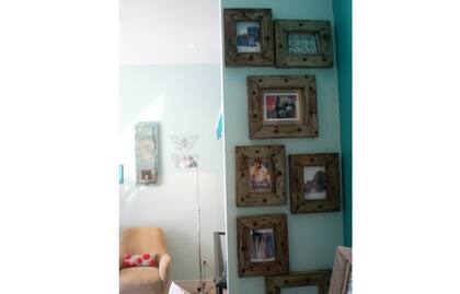 Detalles que suman: portarretratos y una mini-colección de cuadros para llenar y dar volumen a una pared.
