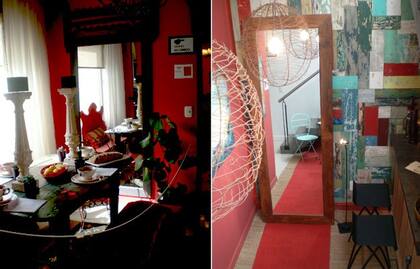 Recursos interesantes: la moldura en la pared que hace de marco a un candelero y aporta volumen, el detalle de una caja de bombones con una base hecha en metal para tener una mesa y el cajón con compartimentos para guardar cosas.