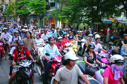 Esto, sumado a las cientos y cientos de motos, transportando a veces a más de dos personas –incluso más de tres– y a bocinazo limpio para dar a entender sus movimientos, creaba una cacofonía urbana de lo más peculiar.