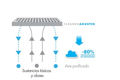 Otra ventaja diferencial es que las placas acústicas tienen un efecto purificador del aire especialmente desarrollado para recintos cerrados. Es decir, no sólo mejoran la acústica ambiental, sino que reducen las sustancias tóxicas y neutralizan olores provenientes de muebles, alfombras, pinturas o productos de limpieza. Funciona como un purificador de aire 100% natural.