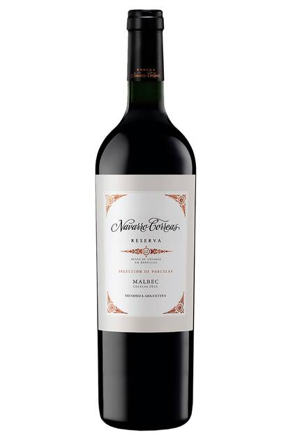 El vino Navarro Correas Reserva, elaborado con uvas de suelos pedregosos, presenta aromas a ciruelas, cerezas y pimienta negra, ideal con carnes asadas y pastas rellenas.