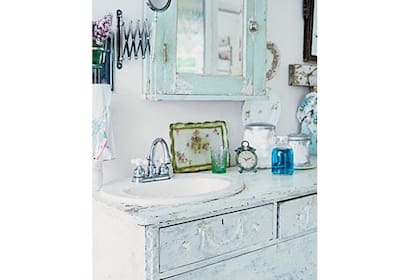 La impronta del estilo Shabby Chic en un celeste sutil aparece en estos antiguos muebles restaurados y reacondicionados para un nuevo uso. | Foto: