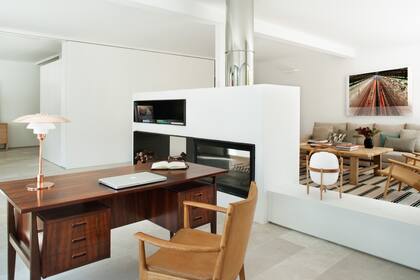 Sólo lo necesario, en este escritorio priman el orden y la funcionalidad. Cuando no se usa como lugar de trabajo, la mesa se integra al mobiliario del resto del living comedor.