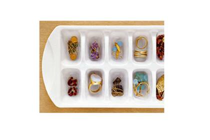 Jamás se me había ocurrido usar una bandeja de cubos de hielo para ordenar anillos y cadenas. Lo cierto es que tiene el tamaño perfecto para mantener todo ordenado sin que se enrede (foto: Realsimple.com).