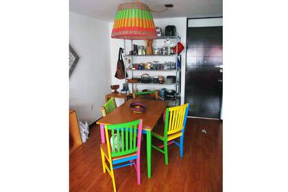 Un amigo de México me mandó esta foto de sus sillas de comedor. Le regalaron un juego de comedor de pino que no tenía mucha onda. Así fue que decidió pintar cada silla de un color diferente; después desarmó todas las sillas y la volvió a armar intercambiando partes (¡divertido!). Los sillones son del estudio de unos amigos diseñadores gráficosl Las hicieron retapizar en lienzo y con pintura para telas las pintaron. Los bordes negros los hicieron con pintura también, pero las retocaron con marcadores permanentes.