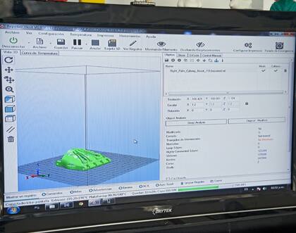 En una Mac pantalla king size, Rodrigo muestra una página para bajar e imprimir cientos de objetos bajo licencia pública: desde una paleta de ping-pong hasta una cabeza de dinosaurio remixada con cresta. Cuando tipea "hand", aparecen prótesis para armar: algunas más humanas, otras más robóticas. Pensando en Felipe, Rodrigo partió de dos modelos exitosos: la RoboHand y la Cyborg Beast. Eran más simples de lo que tenía en mente y no se ajustaban a todos los requisitos de Felipe, así que empezó a bajar archivos de otras manos, pensar cómo mejorarlos, consultar con especialistas. Sobre la base de un primer prototipo, un amigo protesista le indicó rotar dedos, modificar medidas y dimensiones. Al cerrarla, debían tocarse los dedos pulgar e índice en un movimiento de pinza.