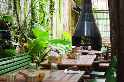 El verano busca lugares para comer al aire libre. En las ciudades, se imponen los patios, las veredas, las terrazas y los jardines decorados con lucecitas, con barras de tragos, vinos boutique y etiquetas llamativas de enólogos jóvenes. Todo esto ocurre en Jagüel, el patio parrillero de 400 metros cuadrados de Juan Migueres y su primo Nicolás, un gran espacio ocupado por grandes mesas y bancos de madera tipo de plaza, entre enredaderas y otras frondas, una parte con toldos y también un comedor atrás más formal.