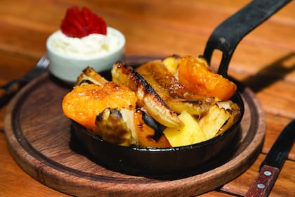 Pedir la baguette de masa madre (50). Postre top: frutas quemadas al barro glaseadas y con crema. De fondo suena el buen rock nacional.