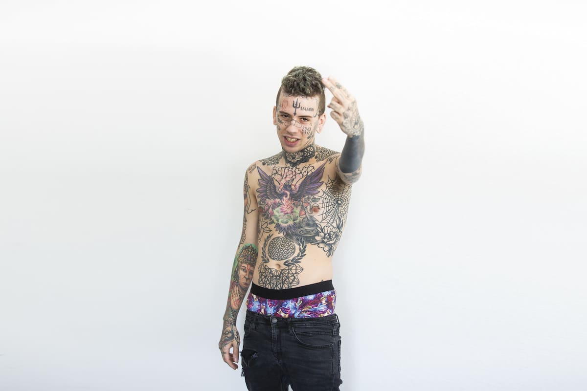 En las piernas me tatúo boludeces porque ya no me importa, pero en la cara y en las zonas que más veo, todo está relacionado con alguna etapa importante de mi vida. Tengo mamma, en italiano, en la cara por mi vieja; tengo un tridente gigante en la frente porque es el arma de Shiva y yo viví un tiempo en un monasterio. La base de la ideología hindú es que no somos este cuerpo, así que no les molestaban mis tatuajes. En este momento, estoy viviendo una etapa agnóstica, pero ese tatuaje igualmente me representa por más que ya no esté conectado con ningún tipo de doctrina. Vivo de esto hace una década, así que siento que estar tan tatuado es una forma de agradecimiento. Mi día a día tiene que ver con el tatuaje, vivo en un estudio de tatuajes.