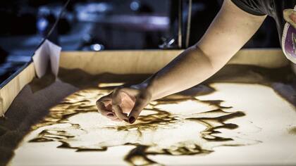 Su departamento estaba en refacción y ella, aburrida, empezó a jugar con arena de la obra. A jugar como artista. Embarazada de su primer hijo, acababa de mudarse y tenía todo embalado. Era de noche y tomó dos sillas, una lámpara de mesa y un cristal. Echó arena sobre el vidrio y, sin saberlo, comenzó a dibujar un futuro diferente, muy lejos de Kiev.