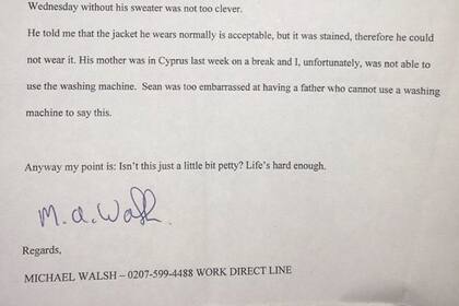 La autoridad de los maestros en clase no debería ser cuestionada nunca, pero hay veces que hasta los padres creen que las decisiones que toman en clase son algo absurdas. Ese es el caso del comediante Seann Walsh compartió una vieja carta que su padre escribió a su profesor después de que se metió en problemas.