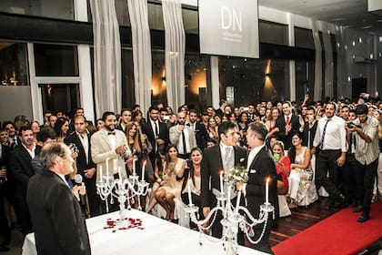 Trescientas personas vestidas de gala pagaron $150 su pase a la primera edición en noviembre de 2013. "Esa fue la prueba piloto. Eran todos amigos nuestros", dice Martín, que siempre creyó en este proyecto que incluye los momentos tradicionales del casamiento: la entrada de los novios, el vals, la mesa de dulces, el ramo al aire y la pizza con cerveza al final.