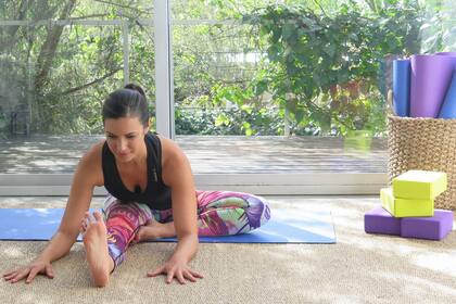 - Sentado. Extender la pierna derecha hacia el frente y llevar el pie izquierdo hacia el muslo derecho. Alargar la columna, y con la pierna derecha extendida y los isquiones bien apoyados, plegarse hacia adelante respirando profundamente. ¿Cuánto? 10 respiraciones por pierna.