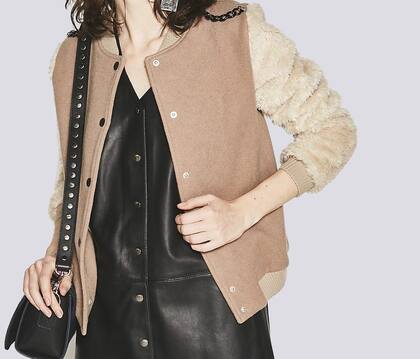 10. Bomber es otro de los modelos deportivos que llegó para quedarse y que Uma sofistica con piel (pelo sintético en las mangas), tejido en los puños y hombros decorados con cadenas. Con 30% off queda en un precio especial de $3.920