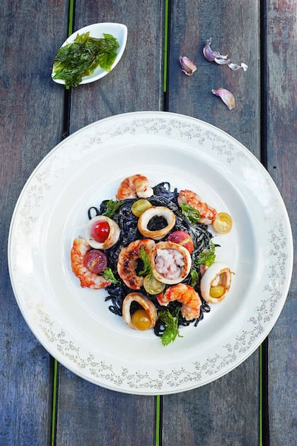 Porque hace un tiempo fui a comer a una trattoria a la que voy muy seguido en Italia y me sirvieron un plato de pasta con tinta de calamar que me encantó. Era tan rico que quise repetir la receta en casa. Y también porque no soy nada esquemática, me gusta romper las estructuras.