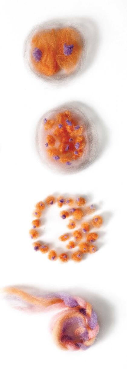 Mientras se desplaza por las trompas de Falopio hasta el útero, el cigoto se divide primero en 2 células, luego 4, luego 8, etcétera. Este es el conjunto de células no diferenciadas.