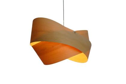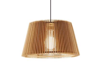Fabricada en madera natural, Blume es una lámpara de techo compuesta por dos chapas entrelazadas entre sí, de apariencia ligera y cálida($1862,Candiluz).