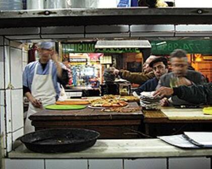 En el mostrador del maestro pizzero se ven las variedades. La vedette es la fugazzeta rellena con jamón, seguida por la de jamón y morrones, las empanadas (fritas, bombas de tiempo pero, a la vez, exquisitas), la pizza de anchoa (se ama o se odia, sin términos medios) y la fugazza tradicional. La de mozzarella conviene esperar que salga "al corte": esto es, que el maestro grite que recién fue extraída del horno, y así disfrutarla fresca y bien caliente.