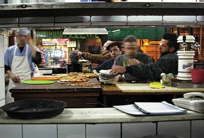 Las Cuartetas es un amasijo de clientes –entre los que suelo contarme- donde no paran de salir pizzas como si estuviéramos en una fábrica de autopartes.
