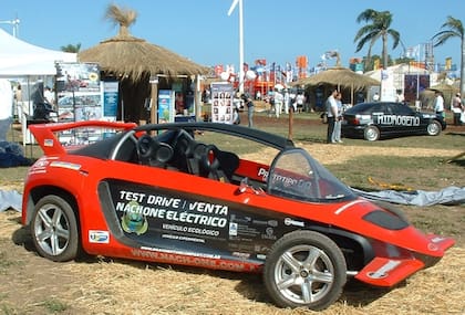 Esta edición de ExpoAgro incluye un interesante Parque de la Energía, donde se presentan diferentes propuestas para aprovechar las energías solar y eólica en el campo. Ahí se exhibe uno de los autos más curiosos de la feria: un vehículo diseñado y fabricado en la Argentina, impulsado sólo por energía eléctrica. Fue creado por el arquitecto Miguel Angel Bravo y el preparador Pedro Campo.