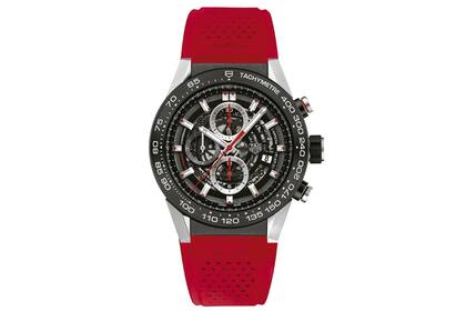 Es tan pregnante el perfil del Carrera que la marca decidió prestárselo a su primer smartphone. Pero, en este caso, volvemos a una de sus encarnaciones más modernas dentro de su versión mecánica: los Heuer 01. Este nombre contiene un homenaje doble. Por un lado, honra a su fundador, Edouard Heuer y, por otro, al no menos basal calibre 1887. En esta versión vemos que la caja es novedosa, con opciones en acero, titanio y cerámica de alta resistencia. Tan orgullosos están los diseñadores de sus interiores que no solo presenta un dial esqueletizado, sino que su fondo, tan estilizado como ultradeportivo, posee una protección especial al estar revestido con carburo de titanio negro. Una de las características más destacables de los 01 es su carácter modular, lo que permite una gran variedad de combinaciones de materiales en los 12 componentes de su mecanismo. Eje destacado de diales norte-sur, pero no por ser discreto el segundero está ausente.