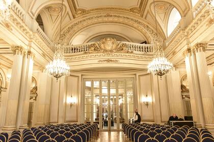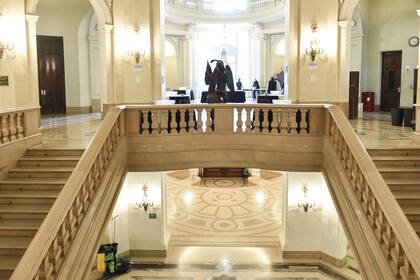La atmósfera francesa se respira a cada paso. Ingresar por el pórtico que da a la avenida Julio A. Roca, conocida como Diagonal Sur, es impactante. Allí mismo se accede al ex salón Pasos Perdidos, hoy Juan Domingo Perón, que cuenta con lo que, originalmente, era una entrada de carruajes y cochera. Fue concebido como elegante espacio de recepción. Sus paredes están tratadas en símil piedra y el piso es de mármol boticcino clásico. Todo un lujo. Épocas de opulencia donde la profusa arquitectura dialogaba con el valor ineludible de la función de estos edificios que hacen a la vida cívica: "Cuenta con mármoles que ya no se pueden trabajar porque las canteras se han terminado, se han secado. Esto sucedió con el tinos, un mármol de color verde muy fuerte que se puede apreciar en el recinto de sesiones", explica Bellocchio sobre esas canteras de Grecia e Italia que fueron usina de materiales de la construcción.