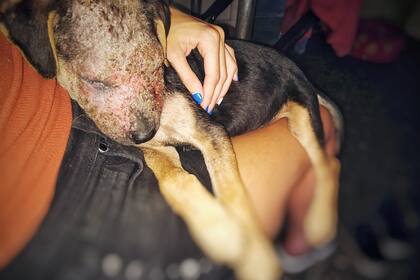 "Los primeros días, además del dolor por la inflamación que produce la sarna, Mafalda tenía miedo. Estaba con la cola entre las patas. Para colmo, como no podía ver porque sus ojitos estaban cerrados, todo se hacía más difícil. Pero a la semana y una vez que empezó a sentirse mejor su carácter cambió por completo y pudo empezar a jugar y disfrutar de las caricias", cuenta Maite, una de las voluntarias de Animalistas de Rosario (@animalistasderosario), un grupo de voluntarios que trabaja en las zonas vulnerables de la ciudad de Rosario para rescatar y cambiar la vida de los animales que se encuentran en situación de calle o sufren maltrato y abandono.