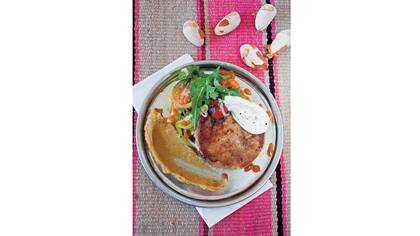 "Conocí el piñón de pehuén o araucaria hace cinco años, cuando organizaba el primer mercado de la Feria Masticar. Charlando con la gente de Neuquén que los había traído, aprendí que estos frutos eran el alimento primordial de los pueblos mapuches, en especial de los pehuenches (que quiere decir gente del pehuén). Me contaron que los recolectaban a fines de febrero y marzo, cuando los conos de la araucaria, que pueden contener más de 200 semillas, caen al suelo. Los mapuches aprendieron a comerlos tras una larga hambruna y lo consideran un alimento sagrado. Todos los años se celebra la Fiesta Nacional del Pehuén y las comunidades originarias conservan sus recetas ancestrales: solían comerlos en la sopa; los tostaban al rescoldo para luego molerlos y hacer harina y también los fermentaban para elaborar una bebida alcohólica que se conoce como Muday (que también se hace de otros cereales). Lo interesante es que hoy están agregándole valor: hacen alfajores, confituras y conservas, y siguen promocionando sus propiedades nutricionales (son ricos en agua, almidón, fibra dietética, hierro y calcio, entre otras). Yo no sabía nada de los piñones de pehuén y cuando empecé a preguntar me llamaba la atención porque algunos colegas me decían: "Son muy difíciles de cocinar". Y basta que me digas que no se puede hacer nada con un producto para que me ponga a investigar. Puedo intentar una y otra vez. Encontré piñones frescos en una góndola del barrio chino y los llevé a mi restaurante para experimentar con el equipo: los tostamos al horno, quedaron duros como una roca; incomibles. Después los hervimos mucho rato y al final quedaban con la misma textura del mote –esa preparación que se hace con maíz y que los granos quedan con una corteza al dente y un interior blando–, por eso los agregamos a una ensalada. Comprendimos que el nombre piñón engaña; el error es tratarlo como un fruto seco. Haciendo asociaciones nos dimos cuenta de que también se parecía al garbanzo; así surgió la idea de hacer humus. Seguimos investigando y se nos ocurrió hacer una arepa. Ahora estamos pensando en un curry, reemplazando las lentejas y otras legumbres con piñón de pehuén. Me gusta su sabor neutro, que aguanta cualquier combinación. Y, además, son muy rendidores, vienen frescos en bolsas de un 1 kilo, que alcanza para 20 arepas."