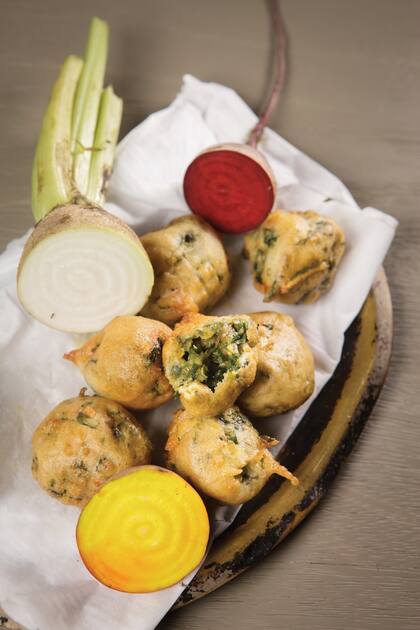 A la hora de utilizar remolachas, suelen descartarse las hojas. El chef aprovecha toda la planta y prepara unos deliciosos buñuelos