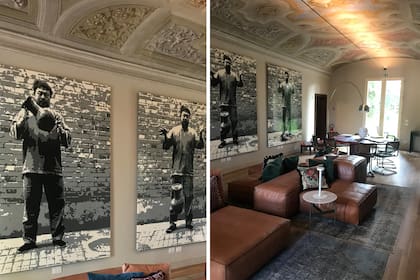 En la planta baja de la casa principal se encuentran los espacios comunes. Un amplio living central con un comedor, una selección de obras de arte contemporáneo -como las del artista WeiWei- que contrasta con una bóveda de cañón corrida, enteramente decorada con frescos de rosados, verdes y celestes pasteles en toda su superficie e iluminada con un artefacto sumamente delicado que la pone en valor. El mobiliario, una mezcla entre lo contemporáneo y las piezas vintage le daban un toque único.