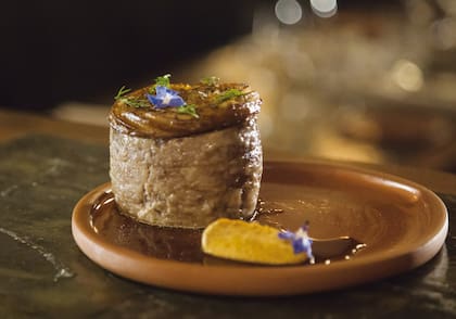Matambre de wagyu, churro de batata, romesco e hinojos
