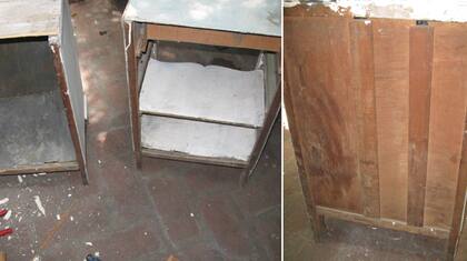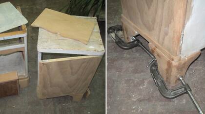* Lijamos las patas delanteras de ambas mesas, la puerta de una, el cajón y un estante de la otra.