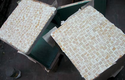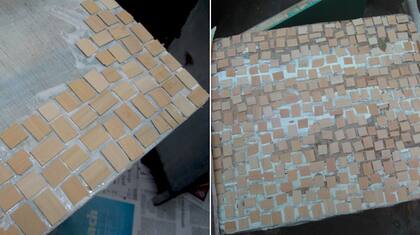 * Una vez que tenés las venecitas, las pegás sobre la superficie con adhesivo vinílico.