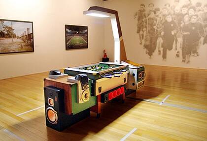 Un metegol combinado con un sistema altavoces,
