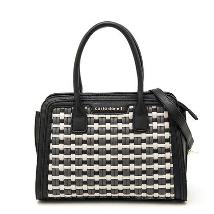 Carla Danelli nos tiene bien acostumbradas a los modelos tan delicados como rendidores, así lo demuestra esta cartera tricolor en blanco, negro y gris que combina con todo (precio especial con descuento $1000).