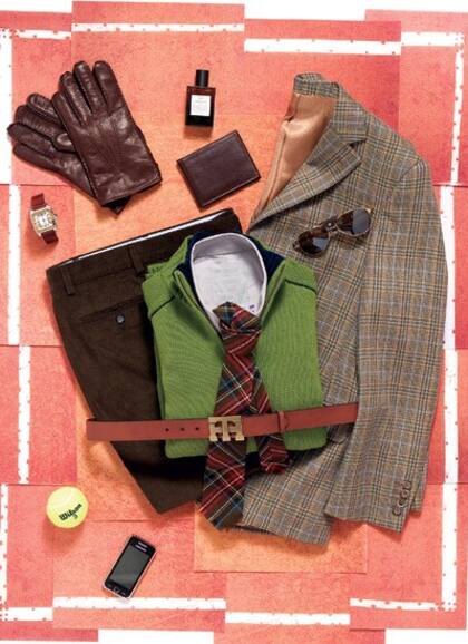 SACO SPORT [CHRISTIAN LACROIX] >> PANTALON DE CORDEROY [GIESSO] >> CAMISA GRIS [WRANGLER] >> SWEATER VERDE CON CIERRE [TOMMY HILFIGER] >> CORBATA ESCOCESA [POLO RALPH LAUREN] >> GUANTES DE CUERO [POLO RALPH LAUREN] >> BILLETERA [GIESSO] >> CINTURON [TOMMY HILFIGER] >> RELOJ SANTOS DE ACERO Y ORO AMARILLO [CARTIER] >> CELULAR TOUCH-SCREEN CON CAMARA DE 3.2 MEGAPIXELES [SAMSUNG] >> PERFUME MUSK DE 50ML. [KIEHL´S] >> GAFAS SANTOS [CARTIER].