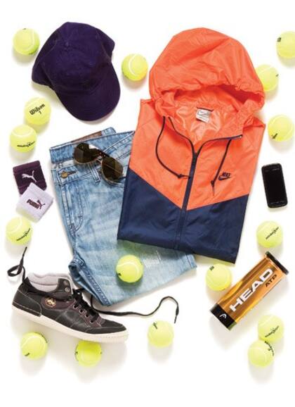 CAMPERA AZUL Y NARANJA LINEA VICTORY [NIKE] >> JEAN CLARO CON ROTURAS [LEE] >> GAFAS [POLO RALPH LAUREN] >> CUP [POLO RALPH LAUREN] >> MUÑEQUERAS BORDADAS [PUMA] >> TUBO DE 3 PELOTAS [HEAD] >> CELULAR NOKIA 5800 XPRESSMUSIC CON PANTALLA TOUCH [NOKIA] >> ZAPATILLAS BOTITAS [PUMA] >> PELOTAS DE TENIS DEL AUSTRALIAN OPEN [WILSON].
