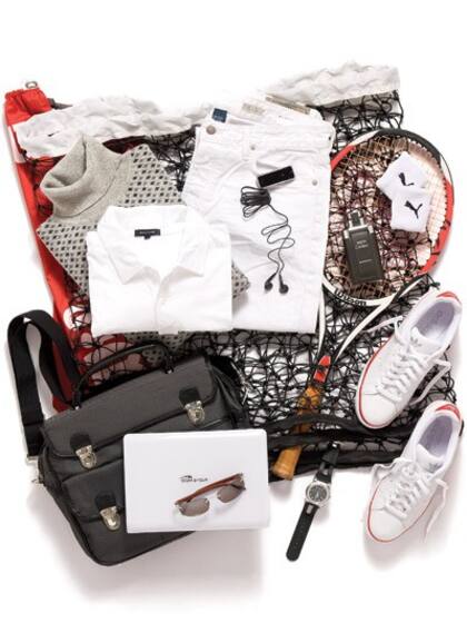 PANTALON BLANCO [POLO RALPH LAUREN] >> POLERA GRIS CON DIBUJOS [UFO] >> CHOMBA BLANCA DE ALGODON [ROCHAS] >> RAQUETA WILSON K SIX ONE TOUR [WILSON] >> MORRAL NEGRO [PUMA] >> MUÑEQUERAS BLANCAS CON BORDADO [PUMA] >> ZAPATILLAS BLANCAS DE CUERO [ADIDAS] >> MP3 [PHILIPS] >> NETBOOK COMPUTER E-NOVA MODELO N-10CS [BGH] >> RELOJ DE ACERO Y CAUCHO [CARRERA PARA HOMERO] >> PERFUME SANTOS 100ML. [CARTIER] >> LENTES DE SOL [CARTIER] >> MINI RED [WILSON].