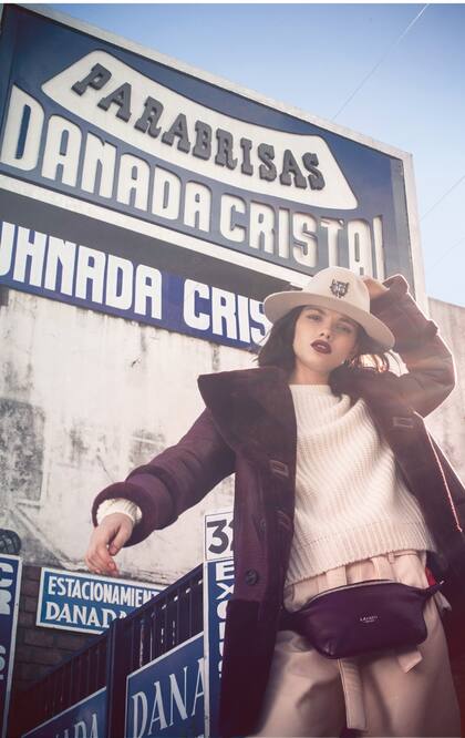 Gamulán (Vitamina), suéter con manga globo (Rapsodia), riñonera de cuero (Lazaro), pantalón de cuero ecológico (Mishka)