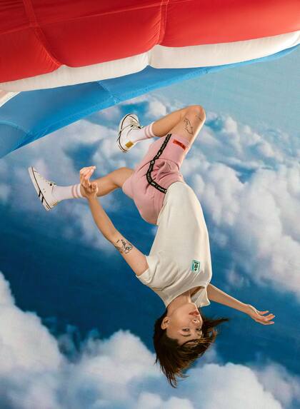 Toda la colección, desde el calzado, accesorios, remeras, hasta buzos y pantalones urbanos, fueron elaborados a partir de la re-utilización de materiales en desuso de parapentes y paracaídas.