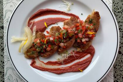 La propuesta de Enero Restaurant está especialmente pensada para trasladarse mentalmente a las vacaciones, cuando todo es placer. Las mollejas crocantes cumplen con esta premisa y son una caricia al paladar. Se realizan con doble cocción –la primera al horno de barro y la segunda a la plancha para conseguir un punto crocante– y se acompañan de una suave crema de remolachas ahumadas más una salsa criolla bien cítrica que refresca y limpia la boca de la grasitud propia de las mollejas. Un plato ideal para acompañar con alguno de sus cócteles de autor en la amplia terraza con vistas 100% al río.
