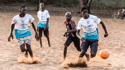 El día a día de una remota aldea africana donde la argentinidad está en los voluntarios, el cura y la iglesia pintada con los colores de Racing