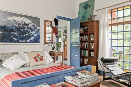 Hay que aprender a aprovechar cada centímetro. En este caso, detrás de la puerta se ubicó una hermosa biblioteca de madera antigua. En la misma línea, un banco a modo de pie de cama expone variedad de revistas para disfrutar antes del descanso.
