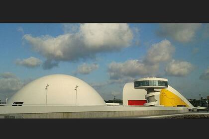 Fue la única obra del arquitecto brasileño en España. Niemeyer reflexionaba sobre el edificio que se erige en el margen izquierdo del río de Avilés, en Asturias: "Y antes incluso de empezar a dibujar, mirando el plano del lugar elegido, la solución se presentó ante mí como algo ya hecho: una plaza flanqueada por el auditorio y el museo, y al fondo, el bloque extenso de la administración."
