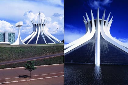 La estructura hiperboloide de hormigón emula dos manos moviéndose hacia el cielo. Niemeyer buscó que fuera luminosa, que llegara "al cielo", evitando la penumbra relacionada a la culpa y el pecado en las antiguas catedrales.