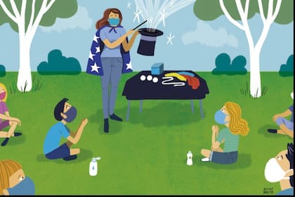 Por eso, en una primera instancia mediante videollamadas y en esta etapa, cara a cara –con el abanico de opciones que abren los encuentros permitidos al aire libre– padres y madres tejen redes, se conectan con conocidos y desconocidos en plazas y vía redes sociales, buscan ideas y se hacen tiempo aunque no lo tengan para crear planes y propuestas con el fin de que los chicos puedan encontrar algo de normalidad y de interacción. Hasta quienes no suelen ser en la vida ordinaria muy ocurrentes, encontraron en este contexto maneras de que sus hijos puedan entrar en contacto con otros: desde encuentros fijados en plazas y parques con padres desconocidos, pasando por jardines rodantes y campamentos virtuales, llegando a la contratación de recreólogos que fomenten el juego y el movimiento en pequeños grupos al aire libre.