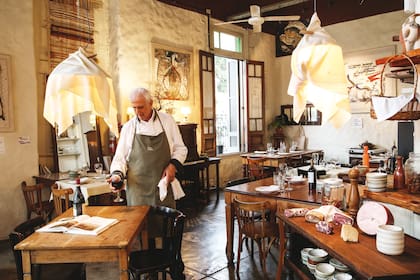 Germinal (67) aprendió haciendo las compras con la madre desde muy chico y se perfeccionó sin apartarse de las fórmulas que trazan la carta aún hoy en que Antonia volvió a Mendoza. Desde hace poco la esquina en ochava, como tantas del barrio de tango, le cambió el estilo con el pavimento nuevo del cruce de Las Casas y Muñiz. Y en las pérgolas las bignonias menos selváticas que antes –por las obras mencionadas– pero ya en flor. El local blanco, alto, rústico y sólido, con ventanales y geranios, muebles añosos de madera, lámparas colgantes ingeniosamente vestidas, piezas de telar, de alfarería.