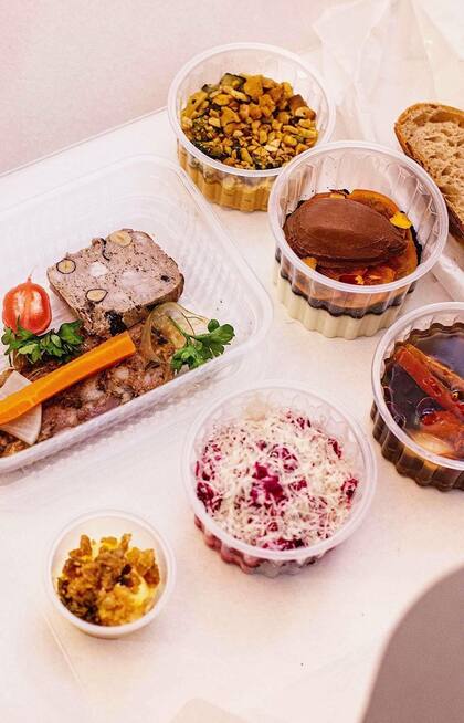 Uno de los mejores deliveries para pedir hoy en la ciudad porteña. El cocinero Julio Martín Báez diseñó una caja con los hits de Julia, su restaurante en Villa Crespo, que incluye una comida completa para dos personas, con tapas y platos fríos y calientes, además de postre, pan de masamadre e incluso la manteca para untar. Todo por $1450, una relación de precio-calidad imbatible. Si bien algunos platos cambian con el tiempo, la base suele ser la misma: ahora por ejemplo tiene rodajas de pan y una manteca con algas en vinagre y salsa de soja; terrina de cerdo y almendras; paté de ave con pickles; un delicioso hummus con pepinos asados y castañas de cajú al curry; una sopa minestrone con pesto de kale y queso sardo; dolmas de repollo rellenas con arroz y un perfecto tartare de remolacha con 'nduja y provolone. Para calentar en el momento, suma una bondiola braseada con una waldorf de repollitos de bruselas; y de postre, el más cremoso queso y dulce que existe. Una fiesta hogareña.