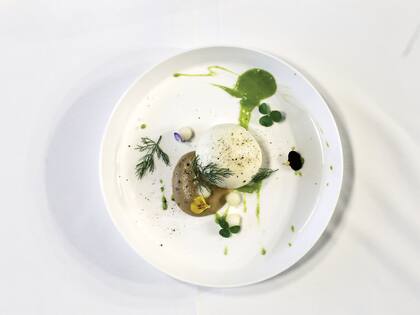 De ese periplo cosecharon diversas influencias y así etiquetan el estilo de Paraje, cocina de influencias con las técnicas de vanguardia de la época, aunque no molecular; apenas cocina a baja temperatura, al vacío y poco más, a lo que agregan creatividad y finura, más productos de excelencia y de estación, como los de la huerta de Estefanía. Y otras preparaciones de la casa, como la delicada burrata rellena con queso azul del primero de los ocho pasos.